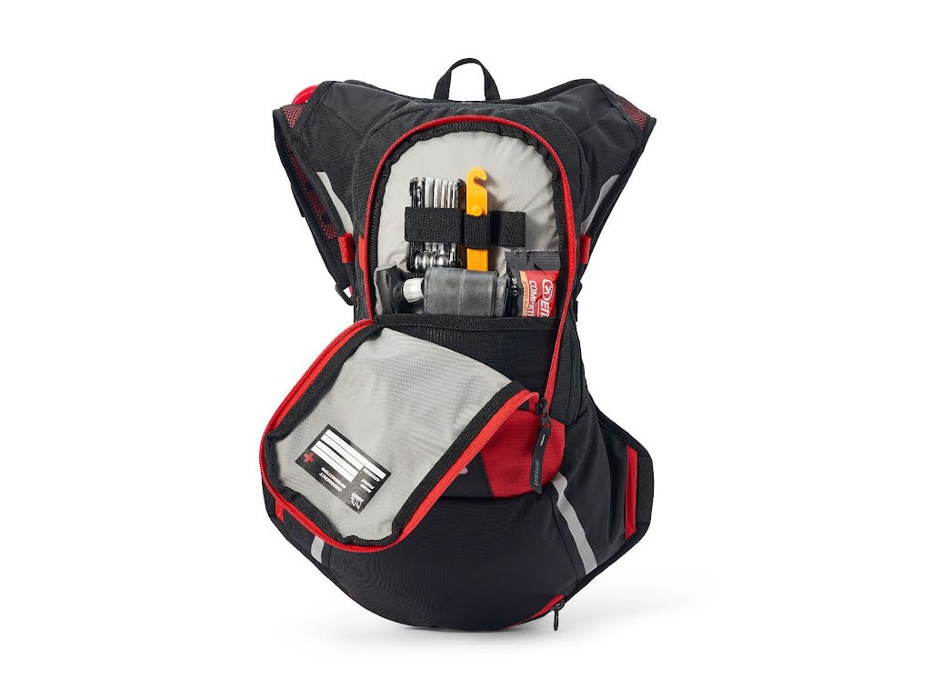 Tento 8 litrový batoh je vybaven hlavním úložným prostorem pro hydratační vak (součástí balení je 3l) a vybavení, kapsami organizéru na zip na nářadí, vybavení a jídlo. Bonusem jsou dva externí upevňovací popruhy, kde si můžete připnout bundu nebo chrániče.