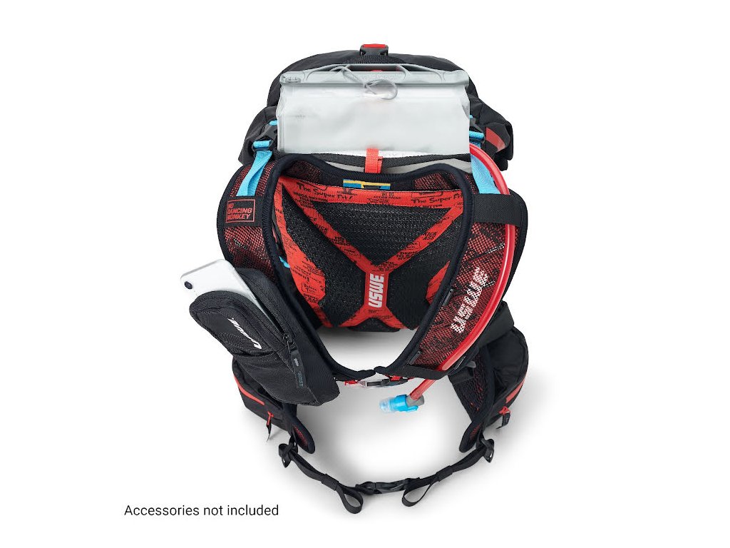 - Systém postrojů No Dancing Monkey ™ 2.1 s integrovanými elastickými popruhy, které se při fyzické námaze rozšiřují spolu s hrudníkem, což umožňuje konstantní těsné a přizpůsobivé uchycení. Ramenní popruhy jsou ergonomicky navrženy pro pohodlné a plynulé rozložení váhy batohu přes ramena.