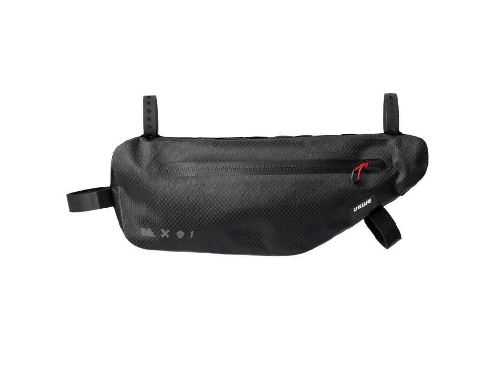 Aerodynamický design se hodí pro většinu rámů. Taška je dodávána se třemi elastickými gumovými popruhy, inspirovanými motocyklovými zavazadly Giant Loop (sesterská značka USWE) a světem nadšenců pro balení kol, aby taška pevně a bezpečně seděla na kole. Taška je také dodávána se 3 popruhy na suchý zip různých délek pro maximální kompatibilitu. Uchycení na rám je vyrobeno z Hypalonu, díky čemuž jsou upevňovací body flexibilní a kompatibilní s taškami s horní trubkou USWE.