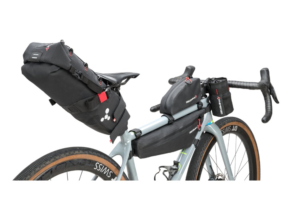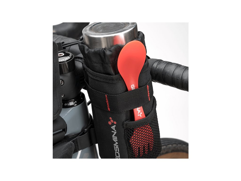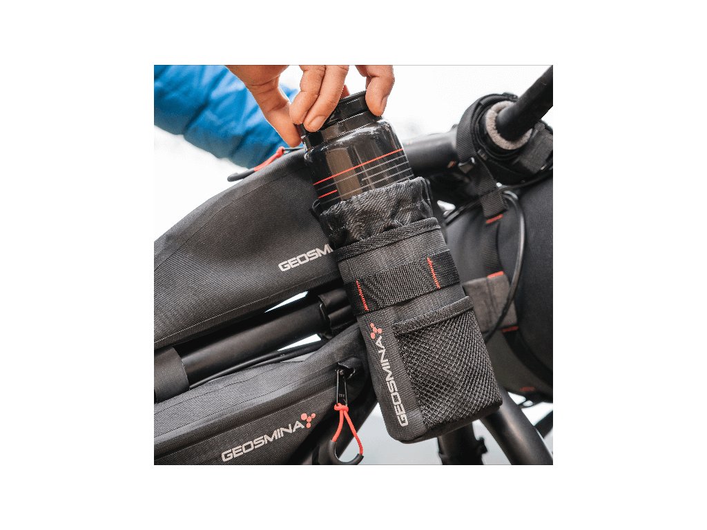 Do naší praktické taštičky na představec můžete uložit cokoli, včetně láhve na pití. Taška má termoplastický polyuretanový povlak, díky kterému je zcela vodotěsná. Má také roztažitelný nylonový uzávěr ve formě elastického pásku, který lze utáhnout a povolit pouze jednou rukou. Pěnový vnitřek funguje jako izolace pro udržení teploty vašeho nápoje v případě, že se jej rozhodnete použít jako extra držák na láhev. Vnitřek je lemován vysoce kontrastním fluorescenčním Ripstopem a je také zcela voděodolný. Dalšími praktickými detaily jsou reflexní loga a vnější elastická síťovaná kapsa, která vám umožní snadnější přístup k vašemu nákladu.