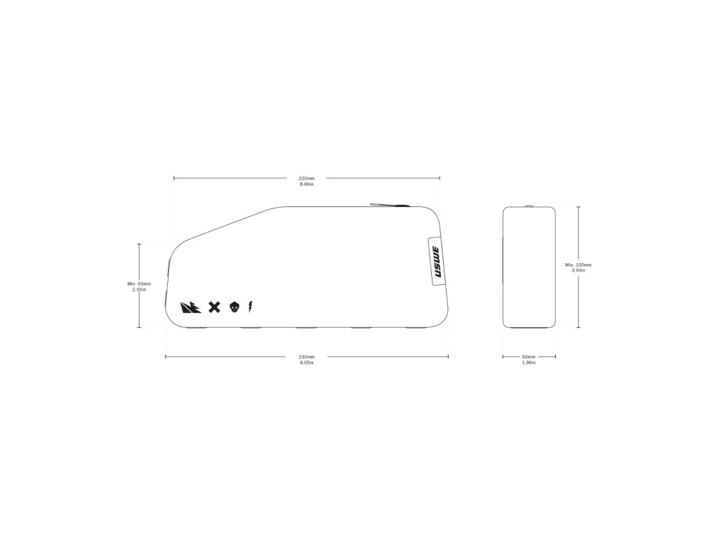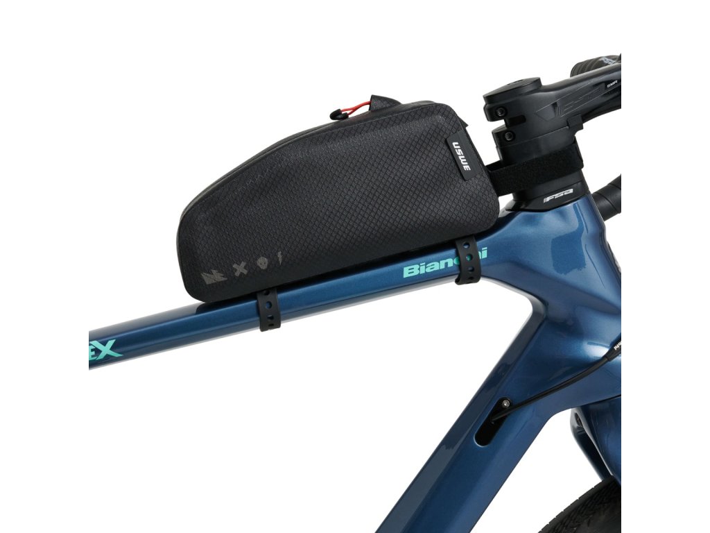Taška je dodávána se dvěma elastickými gumovými popruhy, inspirovanými nadšenci z motocyklových zavazadel a balení kol, aby bylo zajištěno, že taška pevně a bezpečně sedí na kole. Taška je také dodávána se 2 popruhy na suchý zip různých délek pro maximální kompatibilitu. Upevňovací body pod taškou jsou vyrobeny z Hypalonu, díky čemuž jsou upevňovací body flexibilní a kompatibilní s rámovými taškami USWE.