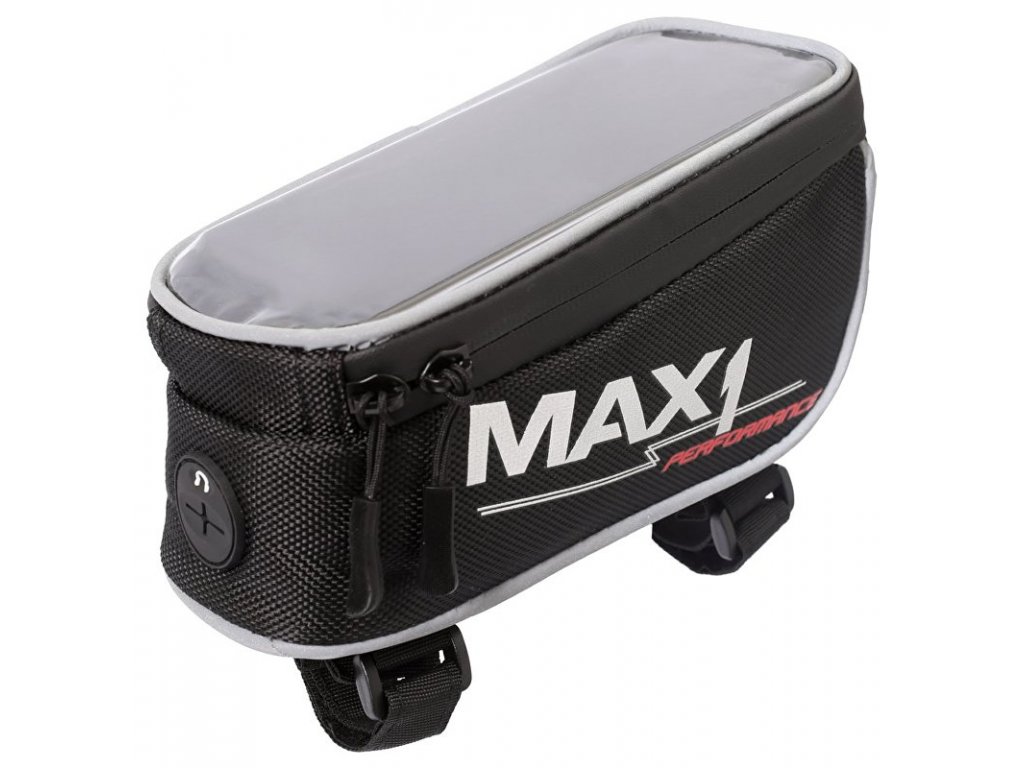 Kompaktní brašna MAX1 na rámovou trubku s kapsou uzpůsobenou pro mobilní telefon.