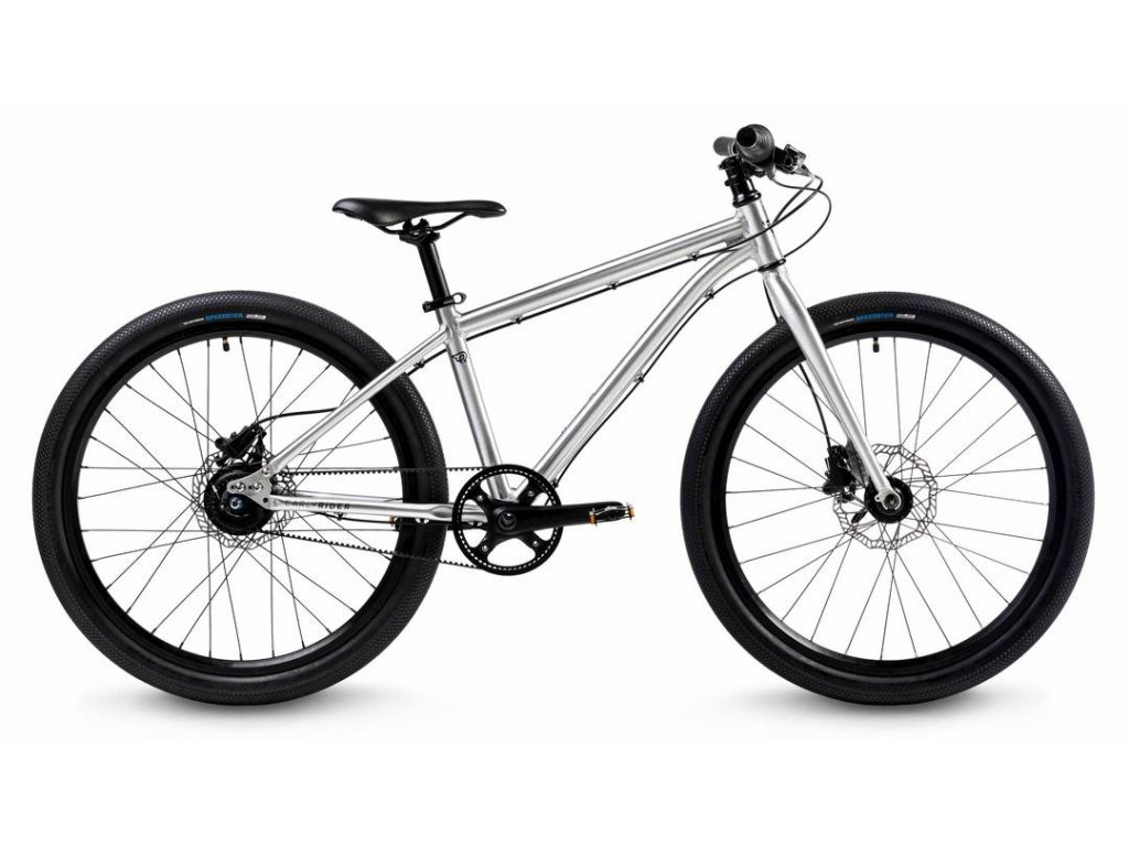 24“ kolo Belter pro další cyklistické kroky je postaveno na precizně zpracovaném aluminiovém rámu i s použitím CNC technologie. Lehký materiál, zpracování a další detaily propůjčují kolu Belter 24 velmi nízkou váhu. Jako každý hliníkový rám od ER je rám Belteru jen minimálně povrchově upravený aby vynikly řemeslně skvěle zpracované spoje trubek. Rám s vidlicí je doplněn koly se značkovými zapouzdřenými náboji a už hydraulickými kotoučovými brzdami pro efektivní brzdění. Zajímavým detailem je pak pohon na řemen, který nevyžaduje téměř žádnou péči, nešpiní jako řetěz a u modelu Belter 24 je doplněn i 8-stupňovým řazením v náboji Shimano Nexus. I díky tomuto praktickému doplňku je Belter 24 připraven na náročnější vyjížďky pro děti od 8 let. Pláště se hladším vzorkem a široké protiskluzové platformy pedálů.