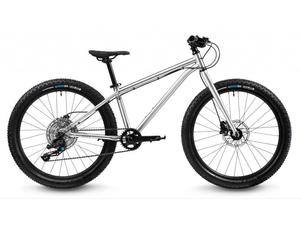 24“ Seeker pro další objevování cyklistiky v terénu je postaveno na precizně zpracovaném aluminiovém rámu i s použitím CNC technologie. Lehký materiál, zpracování a další detaily propůjčují kolu Seeker 24 velmi nízkou váhu. Jako každý hliníkový rám od ER je rám Seekeru jen minimálně povrchově upravený aby vynikly řemeslně skvěle zpracované spoje trubek. Rám s vidlicí je doplněn koly se značkovými zapouzdřenými náboji a kvalitními ložisky pro minimální valivý odpor. Výkonné diskové brzdy jsou pro odrostlejší cyklisty mezi 6-8 roky už nutností, stejně jako odolná 9ti rychlostní přehazovačka BOX3 s velkým rozpětím 11-46 zubů na kazetě. Kliky Samox Direct Mount s 28 zuby na převodníku a 2.25 pláště s hrubým vzorkem do všech trailů. Váha kola 9,95 kg.