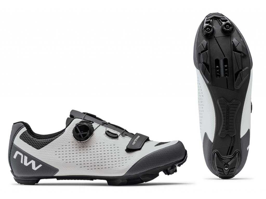 Pánské XC tretry Northwave s podrážkou XC 10 z odlehčených kompozitových vláken s gumovými protiskluzovými prvky. Unibody konstrukce s velkými větracími zónami a velmi odolnými tenkými materiály v ergonomickém střihu omezuje něžádoucí tlaky. Asymetrické utahování omezuje tlaky na svršku boty a díky systému Northwave SLW3 dial lze botu rychle a jemně dotáhnout i v rukavicích. Spodní Power strap na suchý zip. Gumová ochrana špičky boty a kotníku, vnitřní vložka Race pro zvýšení pohodlí. Utahování pomocí nejpevnějších lanek z Dyneema vláken. Velikost uvedena v EU číslování, hmotnost: 360g.