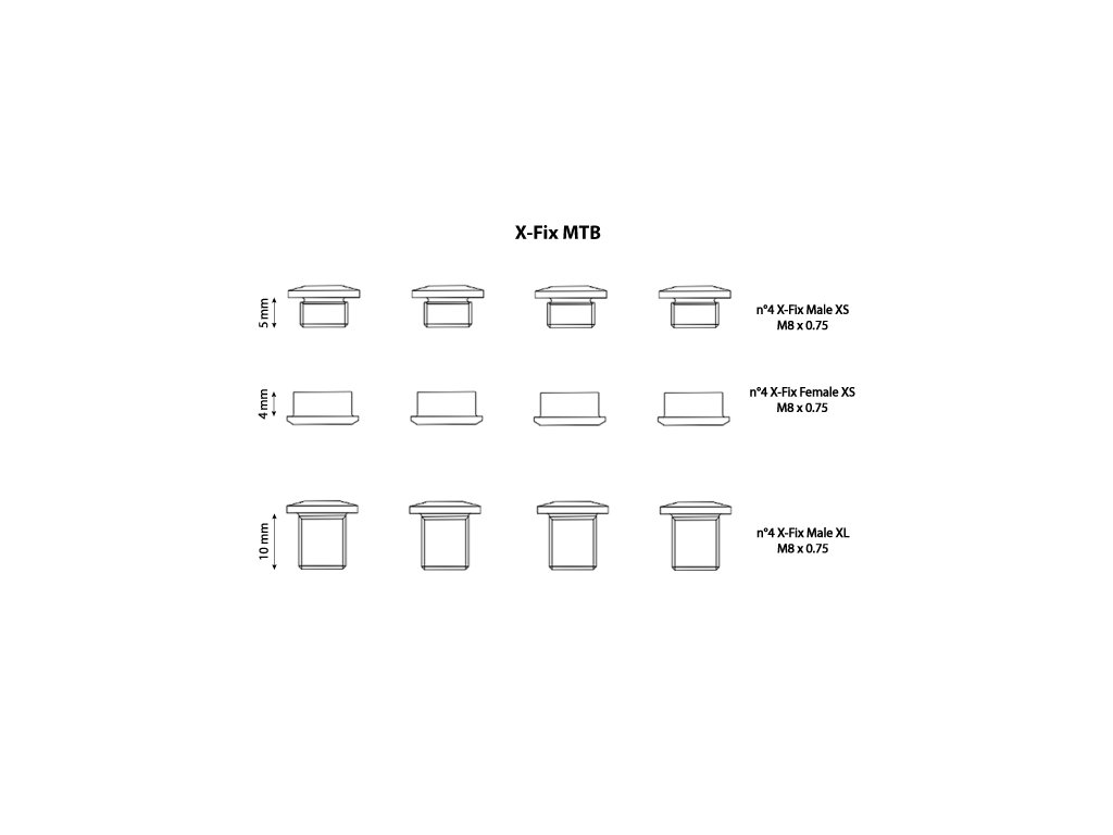 Materiál Al7075, sada obsahuje 4 šroubů a 4 matek. Váha 8.8g. Velikost XS.