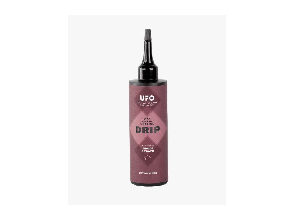 Abychom doplnili řadu mazání UFO Drip, vyvinuli jsme UFO Drip pro Indoor. Povlaky na voskové řetězy mají mnoho výhod, ale také mají tendenci pouštět přebytečný povrchový vosk po počáteční aplikaci. S UFO Drip for Indoor byl poměr vosku a modifikátorů tření upraven tak, aby byla maximalizována účinnost v čistých podmínkách s minimálním nánosem povrchu.